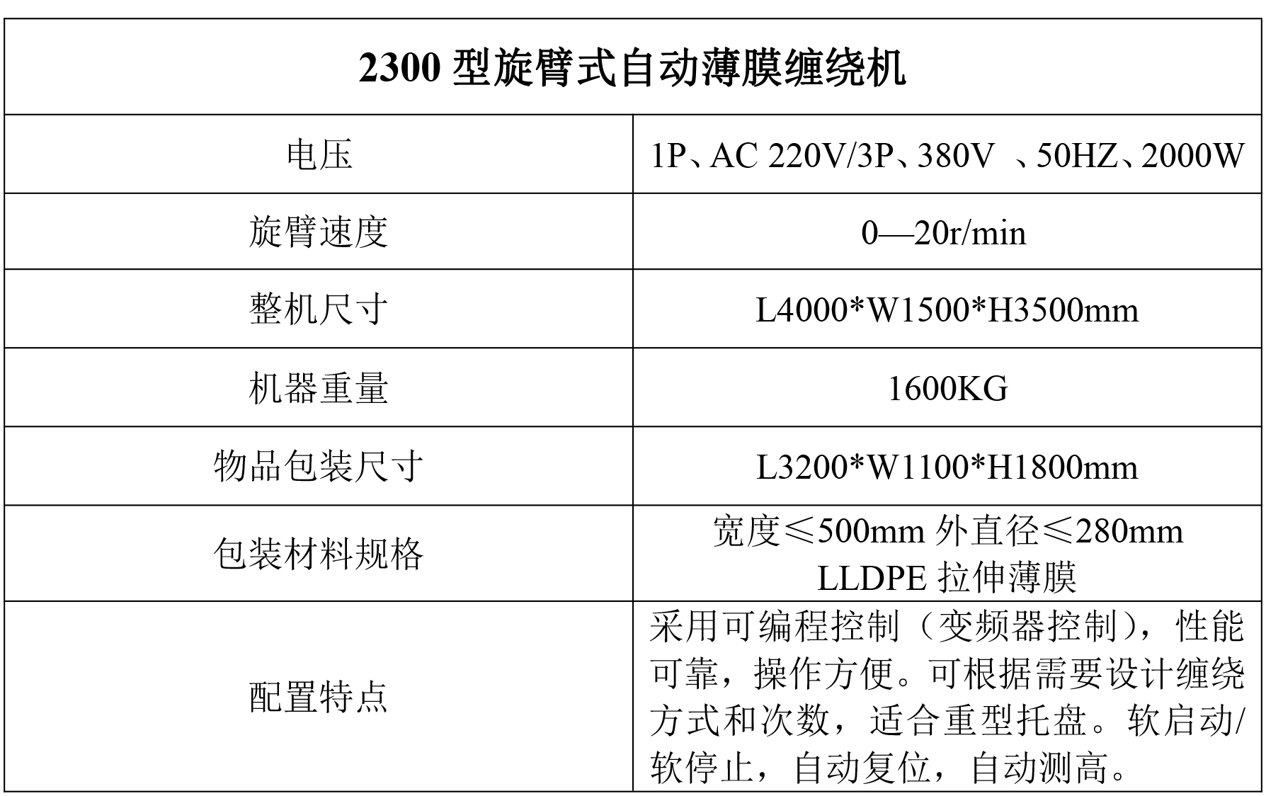 2300型旋臂式自動(dòng)薄膜纏繞機(jī)